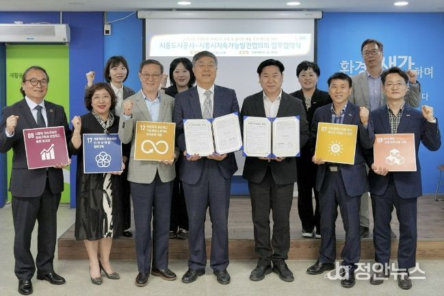 정안뉴스 안정주 기자 | 시흥시지속가능발전협의회는 지난 4월 23일 정왕동에 있는 환경미화타운 회의실에서 시흥도시공사와 지역사회 자원순환 거버넌스 구축 및 지속가능한 도시 조성을 위한 업무협약을 체결했다.