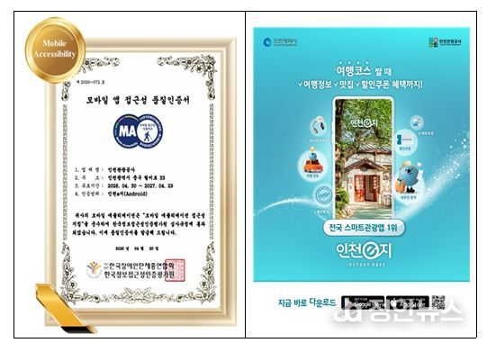 정안뉴스 안정주 기자 | 인천광역시(시장 유정복)는 스마트관광 플랫폼 ‘인천e지’ 앱(APP)이 관광약자를 배려한 서비스 구현의 우수성을 인정받아, ‘모바일 앱 접근성 품질인증(Mobile Accessibility)’을 3년 연속 획득했다고 밝혔다.