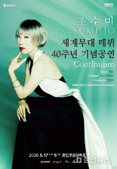 정안뉴스 안정주 기자 | 용인문화재단은 세계적인 소프라노 조수미의 세계 무대 데뷔 40주년 기념 공연 'Continuum'을 오는 5월 17일 용인포은아트홀에서 선보인다.