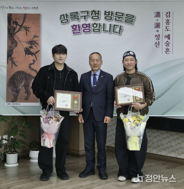 정안뉴스 안정주 기자 | 안산시 상록구는 지난 23일 구청장실에서 성안고 사거리 종이 유출 사고 현장에서 자발적으로 수거 활동에 나선 한양대학교 ERICA 캠퍼스 학생 2명에게 ‘모범시민 표창’을 수여했다고 24일 밝혔다.