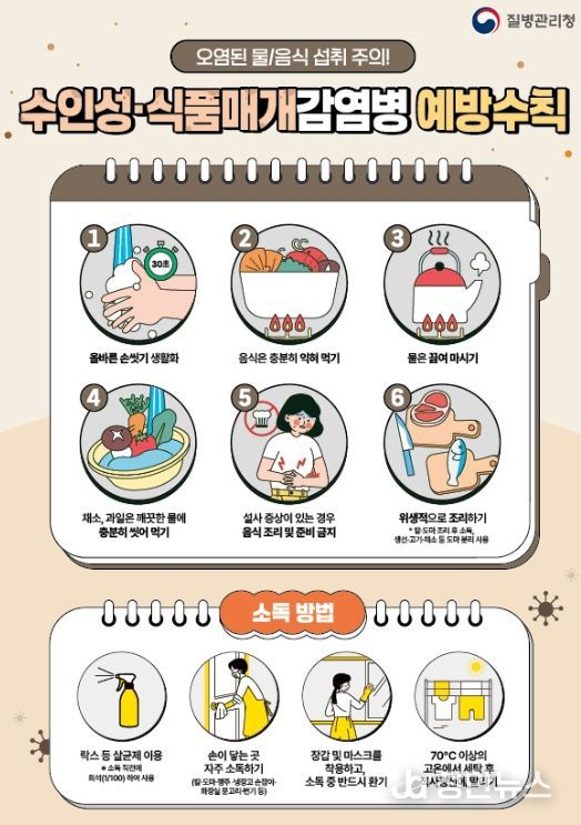 류순려 질병관리과장은 “여름철에는 집단 감염 위험이 큰 만큼 설사나 구토 등의 증상이 나타나면 즉시 보건소에 신고해 주시길 바란다”며 “수인성·식품매개감염병 예방을 위해 안전한 물과 음식을 섭취하고, 흐르는 물에 비누로 30초 이상 손을 씻는 등 예방수칙을 철저히 준수해 달라”고 당부했다.