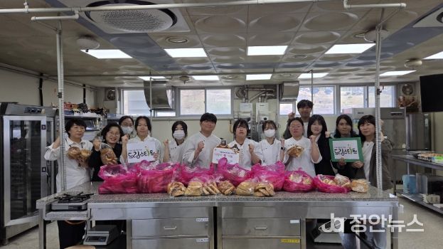 공주생명과학고등학교 식품가공과 학생들이 만든 카스텔라, 슈크림, 단팥빵 등으로 구성된 70꾸러미를 마련해 각 가정에 전달했다.