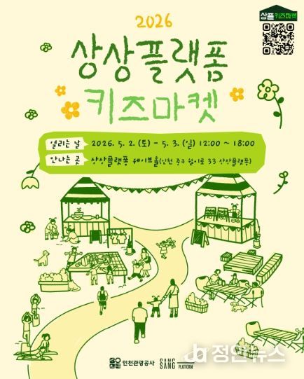 정안뉴스 안정주 기자 | 인천관광공사는 오는 5월 2일부터 3일까지 이틀간, 상상플랫폼 웨이브홀에서 “2026 상상플랫폼 키즈마켓”을 개최한다고 밝혔다.