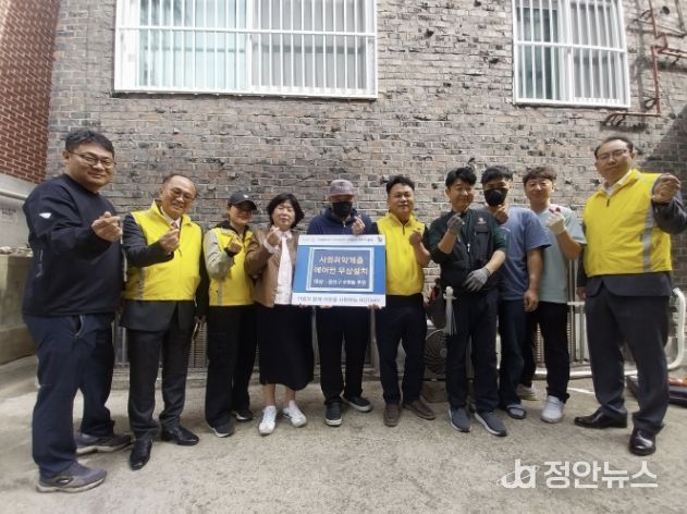 정안뉴스 안정주 기자 | 지난 23일 수원시 권선구 호매실동 지역사회보장협의체는 업무협약을 맺은 수원남부로타리 클럽과 주거환경개선 특화사업의 일환으로, 반지하 빌라에 거주하는 취약계층 어르신 댁에 에어컨을 설치했다.