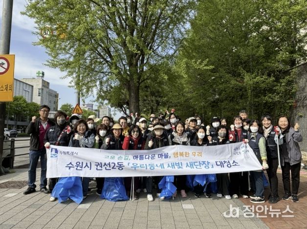 정안뉴스 안정주 기자 | 수원시 권선구 권선2동 행정복지센터는 지난 22일 관내 단체 및 지역주민과 함께 '우리 동네 새빛 새 단장' 대청소를 추진했다고고 밝혔다.