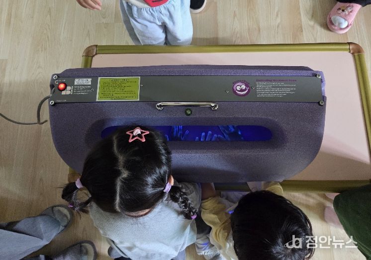 특히, 이번 교육에서는 아이들이 눈으로 직접 세균을 확인할 수 있는 ‘뷰박스(View-box)’를 활용한 체험형 교육이 큰 호응을 얻고 있다. 형광 로션을 바르고 손을 씻은 뒤, 뷰박스 검사기로 손에 남은 세균(형광물질)을 직접 눈으로 확인하는 체험형 방식으로 진행돼 흥미를 높이는 동시에 교육 효과를 극대화했다는 평가다.