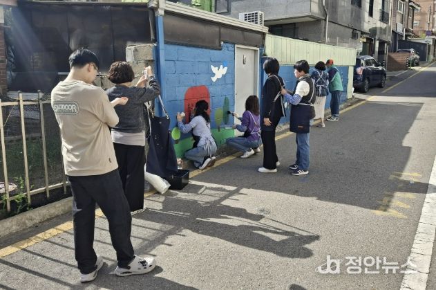 정안뉴스 안정주 기자 | 지난 23일, 수원시 장안구 율천동의 인적 드문 골목길이 마을의 온기를 품은 거대한 캔버스로 탈바꿈했다. 단순한 환경 미화를 넘어, 주민들이 직접 마을의 이야기를 담아냈다는 점에서 그 의미가 남다르다.