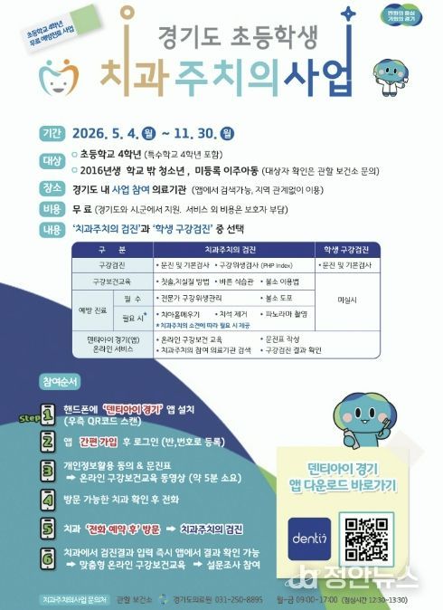 정안뉴스 안정주 기자 | 포천시보건소는 지역 내 아동의 구강건강 관리를 강화하기 위해 오는 5월 4일부터 11월 30일까지 ‘초등학생 치과주치의사업’을 추진한다.