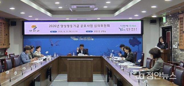 정안뉴스 안정주 기자 | 연천군은 지난 23일 군청 상황실에서 ‘양성평등기금 공모사업 심의위원회’를 개최하고, 2026년 양성평등기금 공모사업에 대한 심의를 진행했다고 밝혔다.