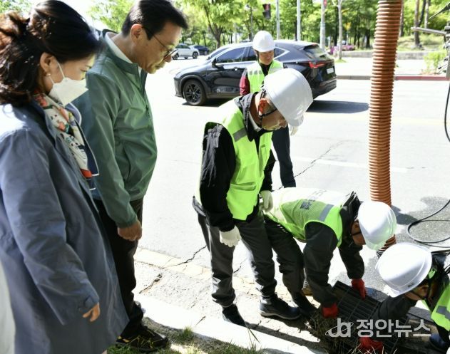 이날 점검은 우기 대비 도로 침수 피해를 예방하고, 주민 불편을 사전에 줄이기 위해 주요 도로변 빗물받이 상태와 협잡물 제거 작업 전반을 확인하는 현장 점검으로 이뤄졌다.