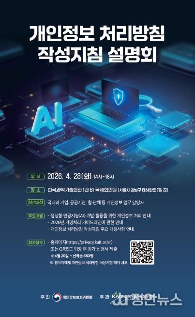 정안뉴스 안정주 기자 | 개인정보보호위원회는 생성형 인공지능(AI) 서비스의 확산과 온디바이스 등 신기술의 등장에 따른 변화된 데이터 처리 환경에 대응해 '개인정보 처리방침 작성지침'을 개정·공개했다.