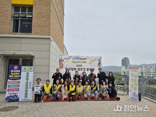 정안뉴스 안정주 기자 | 양평청소년문화의집은 지난 22일 양평중학교에서 지역 연계 사업 ‘양청문서포터즈’를 통해 ‘학교평화 등굣길 음악회’를 운영하고 학교폭력 예방 캠페인을 진행했다.