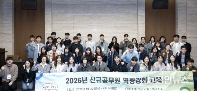 정안뉴스 안정주 기자 | 제천시는 4월 22일부터 24일까지 2박 3일간 지난해부터 올해까지 신규 임용된 공무원 45명을 대상으로 제천 리솜 리조트에서 ‘2026년 제천시 신규공무원 역량강화 교육’을 실시했다.