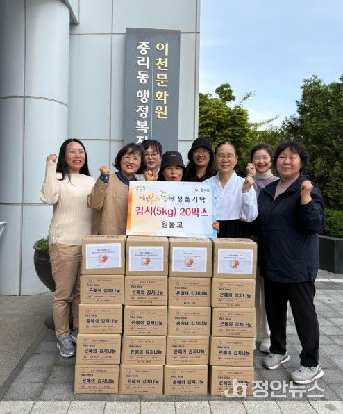 정안뉴스 안정주 기자 | 이천시 중리동행정복지센터는 원불교가 지역 내 어려운 이웃들을 위해 김치(5kg) 20박스를 기탁하며 따뜻한 나눔을 실천했다고 밝혔다. 이번 기탁은 경제적 어려움과 돌봄 공백 등으로 일상생활에 어려움을 겪고 있는 취약계층 이웃들에게 조금이나마 힘이 되고자 마련됐다.