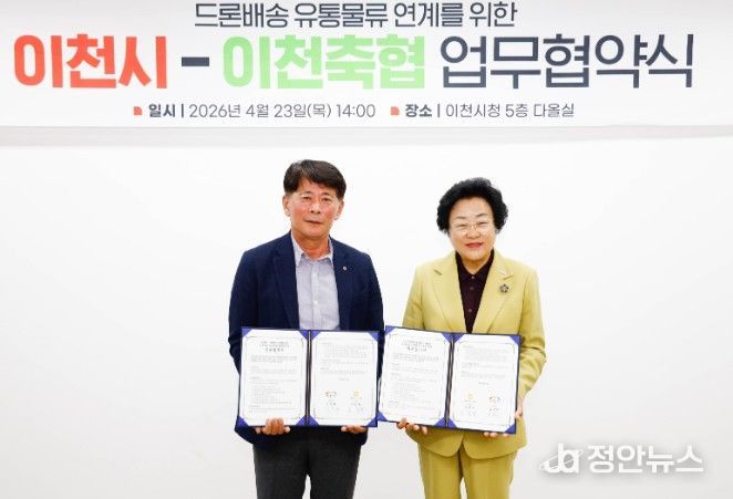 정안뉴스 안정주 기자 | 이천시는 23일 이천축산업협동조합(이하 이천축협)과 ‘드론배송 유통물류 연계를 위한 업무협약’을 체결했다.