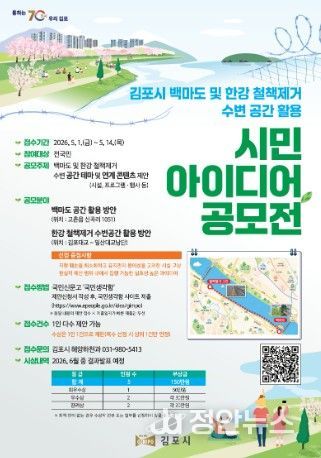 정안뉴스 안정주 기자 | 김포시가 한강 철책 제거 부지와 백마도 등 천혜의 수변 자원을 시민들의 쉼터와 문화 공간으로 탈바꿈하기 위해 ‘시민 아이디어 공모전’을 개최한다고 밝혔다. 이번 공모전은 ‘김포시 백마도 및 한강 철책 제거 수변 공간 활용’을 주제로, 시민들의 창의적이고 실효성 있는 아이디어를 발굴해 시정 운영에 적극 반영하기 위해 마련됐다.
