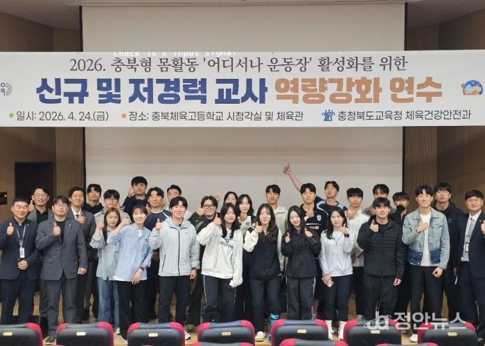 정안뉴스 안정주 기자 | 충청북도교육청은 24일 오전 9시부터 충북체육고등학교에서 중‧고등학교 신규 및 저경력 체육 교사를 대상으로 '충북형 몸활동 어디서나 운동장' 활성화를 위한 역량 강화 연수를 운영했다.