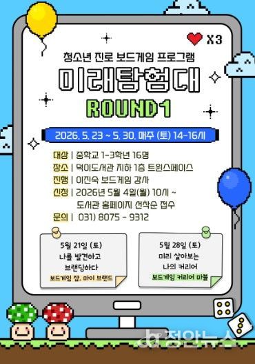 정안뉴스 안정주 기자 | 고양특례시 덕이도서관은 청소년들이 보드게임을 통해 자신의 적성과 흥미를 발견하고 미래 진로를 설계할 수 있도록 돕는 ‘미래탐험대 ROUND1’을 운영한다고 24일 밝혔다.