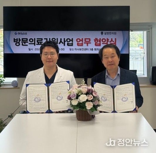 정안뉴스 안정주 기자 | 하남시 보건소는 지난 23일, 거동이 불편해 병원 방문이 어려운 어르신과 환자를 위해 설명한의원과 ‘방문의료지원사업 업무협약’을 체결했다고 밝혔다.