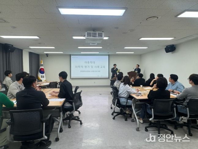 교육은 아동학대의 조기 발견과 적절한 대응을 위한 내용으로 구성됐으며, ▲아동학대 선별도구 이해 ▲학대 의심 아동의 증상·징후에 대한 의학적 평가 ▲사례 분석 및 질의응답 등으로 진행됐다.