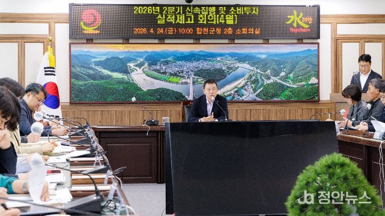 정안뉴스 김재홍 기자 | 합천군은 24일 장재혁 합천군수 권한대행 주재로 ‘2026년 2분기 신속집행 대책보고회를 개최하고 지역 경제 활성화를 위한 재정 집행 가속화 방안을 논의했다.