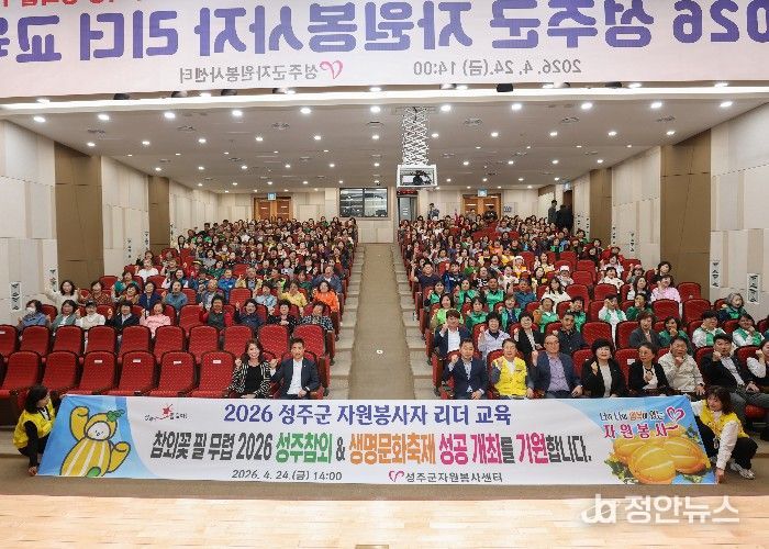 정안뉴스 안정주 기자 | 경북 성주군자원봉사센터는 지역 공동체의 따뜻한 변화를 이끄는 자원봉사 리더들을 한자리에 모아 의미 있는 교육의 장을 마련했다. 4월 24일 성주군청 대강당에서 열린 '2026 성주군 자원봉사자 리더 교육'은 단순한 역량 강화 교육을 넘어 나눔과 연대의 가치를 되새기고, 다가오는 지역 대표 축제를 함께 준비하는 결속의 자리로 깊은 울림을 전했다.