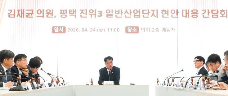 김재균 의원은 24일 경기도의회 2층 예담채에서 경기도 산업입지과, 평택시 반도체AI과, 평택도시공사, 사업시행자, 그리고 입주기업 대표가 참석하는 ‘진위3 일반산업단지 현안 대응 간담회’를 긴급 개최했다.