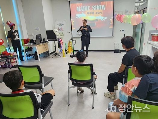 ‘책‧만‧세 놀이터’는 재원 아동 22명을 대상으로 도서관 견학부터 매직스토리텔링 전문강사가 진행하는 총 10회차 그림책 마술놀이 수업과 참여자들이 함께 만드는 미니 공연 발표회까지 12차로 진행된다.