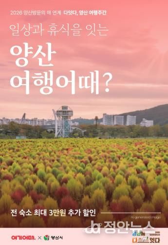 정안뉴스 김재홍 기자 | 양산시는 ‘2026 양산방문의 해’를 맞아 당일형 관광에 치중된 여행 패턴을 관내에서 하룻밤 머무는 ‘체류형 관광’으로 전환하면서 지역 관광 산업에 활력을 불어넣기 위해 추진한 숙박 할인 프로모션 ‘다잇다, 양산 여행주간’이 관광객들의 높은 이용률 속에 개시 일주일 만에 종료됐다고 밝혔다.