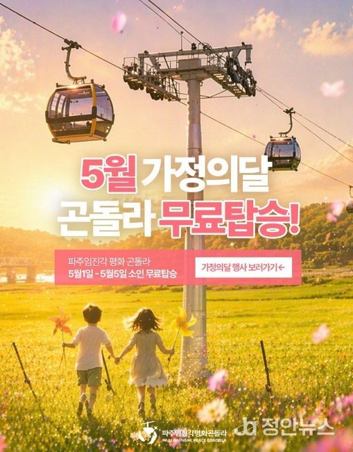 정안뉴스 안정주 기자 | 파주시는 대표 관광 콘텐츠로 자리 잡은 ‘파주임진각평화곤돌라’에서 5월 가정의 달을 맞아 가족 단위 방문객을 위한 다양한 프로그램을 운영한다고 전했다.