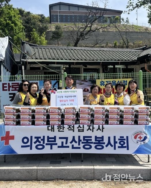 정안뉴스 안정주 기자 | 의정부시 고산동주민센터는 4월 23일 고산동 적십자봉사회(회장 이미애)가 직접 만든 열무김치 50통을 취약계층을 위해 전달했다고 밝혔다.