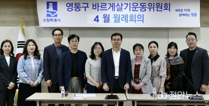 정안뉴스 안정주 기자 | 수원시 영통구는 지난 24일 바르게살기운동 영통구지도위원회가 영통구청 상황실에서 각 동 위원장 및 총무 등 14명이 참석한 가운데 4월 월례회의를 개최했다고 밝혔다.