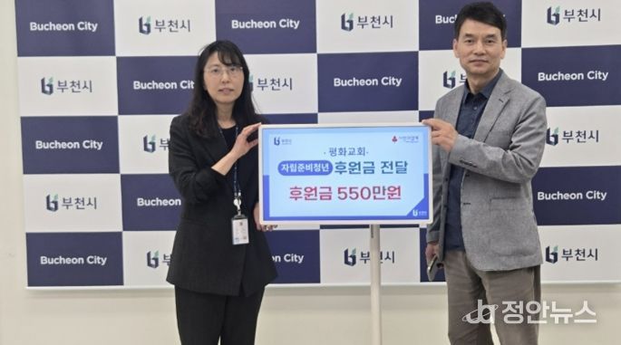 정안뉴스 안정주 기자 | 부천시는 지난 24일 중동 힐스테이트 프로그램실에서 ‘평화교회 자립준비청년 돕기 후원금 전달식’을 열었다. 이번 전달식은 평화교회가 지역 내 아동복지 향상과 나눔 문화 확산을 위해 마련됐다.