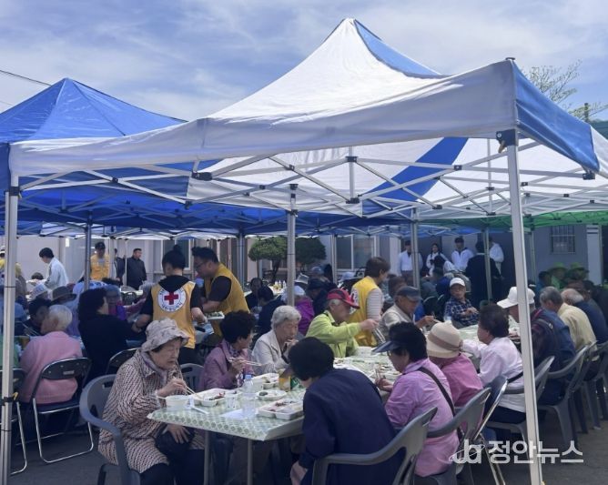 정안뉴스 안정주 기자 | 대한적십자사 연천봉사회는 지난 26일 연천읍행정복지센터 주차장에서 지역사회 어르신들을 위한 따뜻한 나눔 행사인 ‘사랑나눔 경로잔치’를 개최했다.