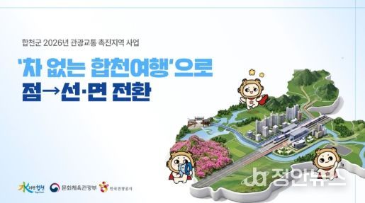 정안뉴스 김재홍 기자 | 합천군은 문화체육관광부와 한국관광공사가 주관하는 ‘2026년 관광교통 촉진 지역 공모사업’에 최종 선정돼 총사업비 8억 원을 확보했다.