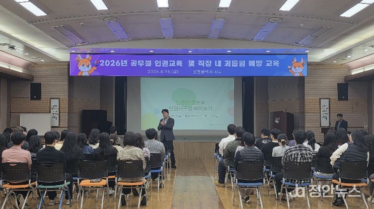 정안뉴스 안정주 기자 | 인천 서구는 지난 24일 총 2회에 걸쳐 서구청 전 직원을 대상으로 ‘2026년 인권교육 및 직장 내 괴롭힘 예방교육’을 실시했다고 밝혔다.