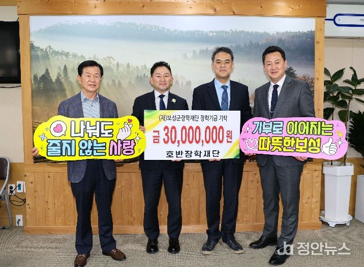 정안뉴스 안정주 기자 | 보성군은 24일 호반장학재단(이사장 김상열)이 지역 인재 양성을 위해 장학기금 3,000만 원을 (재)보성군장학재단(이사장 문찬오)에 기탁했다고 밝혔다.