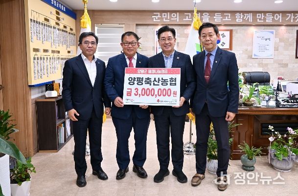 정안뉴스 안정주 기자 | 양평군은 지난 23일 양평축산농협이 취약계층을 위한 해피나눔성금 300만 원을 기탁했다고 밝혔다.