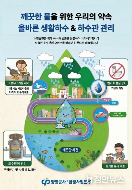 정안뉴스 안정주 기자 | 양평공사은 군민의 삶이 행복한 자연 친화적인 양평을 구현하기 위해 ‘2026년 올바른 생활하수 배출 및 빗물받이 관리 홍보 활동’을 본격적으로 추진한다고 밝혔다.