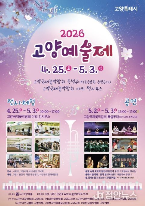 정안뉴스 안정주 기자 | 고양특례시의 봄을 수놓는 지역 예술 축제 ‘2026 고양예술제’가 오는 5월 3일까지 고양국제꽃박람회 특설무대와 야외 전시부스에서 개최된다.