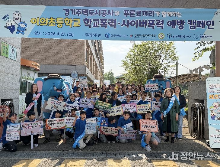 정안뉴스 안정주 기자 | 경기주택도시공사(GH)가 수원시 이의초등학교에서 사이버 학교폭력 예방을 위한 등굣길 캠페인과 찾아가는 예방교육을 실시했다고 27일 밝혔다.