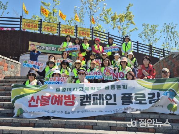 정안뉴스 김재홍 기자 | 제21대 밀양여자고등학교 총동문회(회장 김상숙)는 지난 25일 용두산 생태공원 잔도길에서 달팽이전망대에 이르는 구간에서 ‘산불 예방 캠페인’을 펼쳤다.