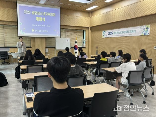 정안뉴스 안정주 기자 | 경기도광명교육지원청은 25일 오전 10시 광명교육지원청 광명실에서 관내 초·중·고등학생 및 학교 밖 청소년 24명이 참석한 가운데 ‘2026 광명청소년교육의회 개회식’을 개최했다고 밝혔다.