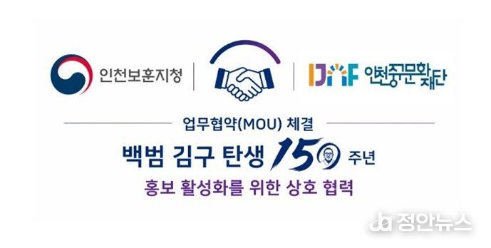 정안뉴스 안정주 기자 | 국가보훈부 인천보훈지청과 인천중구문화재단이 4월 27일 ‘백범 김구 탄생 150주년 홍보 활성화를 위한 업무협약(MOU)’을 체결했다.