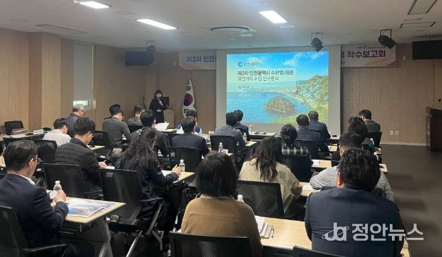 정안뉴스 안정주 기자 | 인천광역시는 수산업의 경쟁력을 강화하고 어촌의 지속 가능한 발전을 도모하기 위한 ‘제3차 인천광역시 수산업‧어촌 발전계획 수립 연구용역’ 착수보고회를 개최했다고 밝혔다.