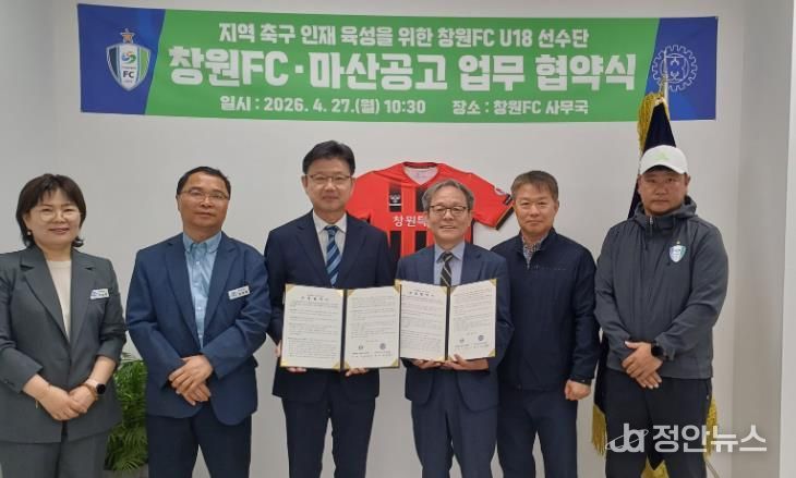 정안뉴스 김재홍 기자 | 창원FC는 27일 오전 10시 30분 창원시청에서 마산공업고등학교와 ‘창원FC U18 선수단 운영’을 위한 업무협약을 체결했다.