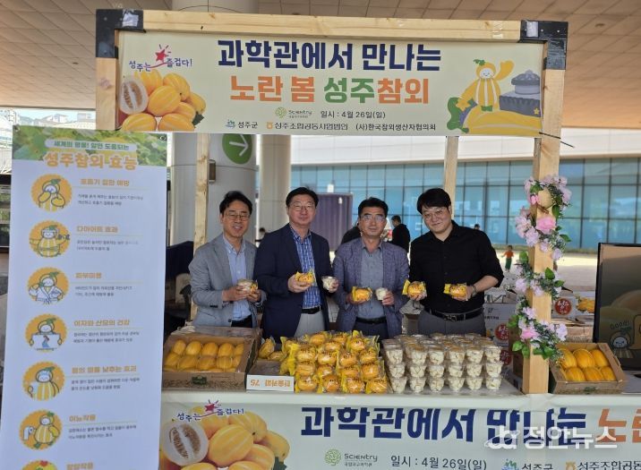 정안뉴스 안정주 기자 | 성주군과 성주조합공동사업법인과 (사)한국참외생산자협의회는 지난 4월 26일, 대구 달성군에 소재한 국립대구과학관에서 과학관에서 만나는 노란 봄 성주참외를 주제로 성주참외 홍보 및 무료 시식 행사를 성황리에 마쳤다.