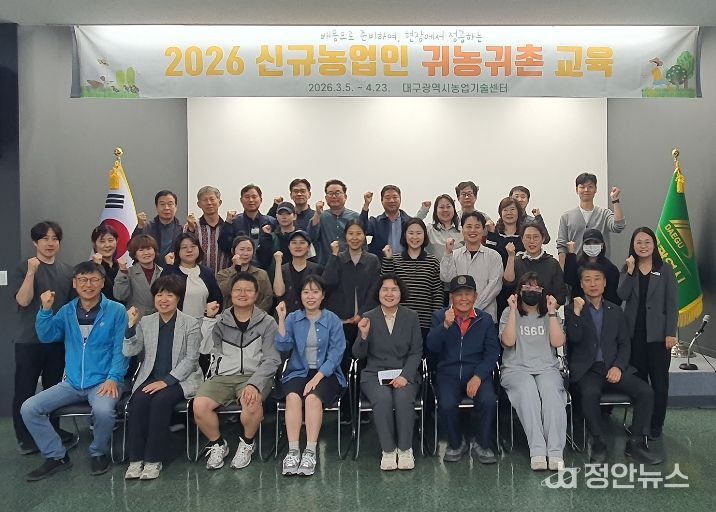 정안뉴스 안정주 기자 | 대구광역시 농업기술센터는 지난 3월 5일부터 4월 23일까지 8주간 운영한 ‘2026년 신규농업인(귀농·귀촌) 기초영농기술교육 1기’ 과정을 성공적으로 마치고 수료식을 개최했다.