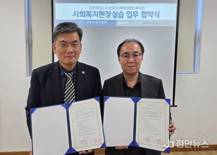 정안뉴스 안정주 기자 | 남양주시는 지난 23일 남양주시북부장애인복지관이 서정대학교와 지역사회 장애인복지 발전 및 전문인력 양성을 위한 산학협력 업무협약을 체결했다고 27일 밝혔다.