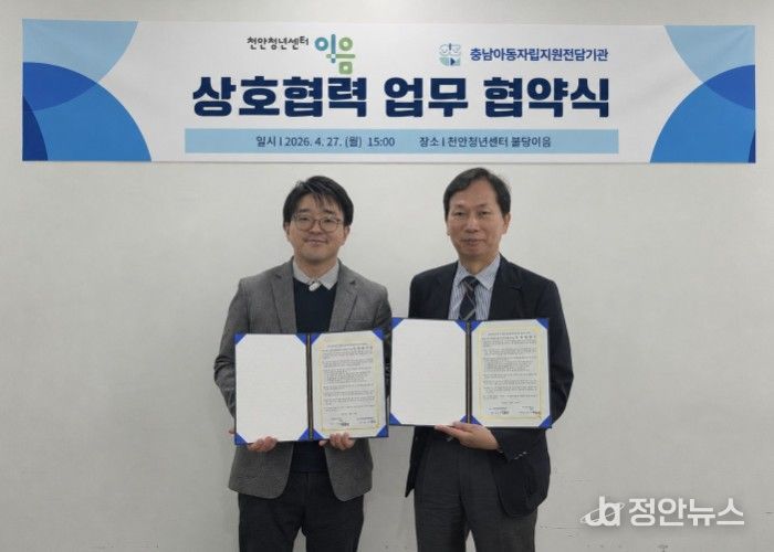 정안뉴스 안정주 기자 | 천안시는 천안청년센터 이음이 27일 충남아동자립지원전담기관과 ‘취약계층 청년 발굴 및 통합 지원을 위한 업무협약’을 체결했다고 밝혔다.